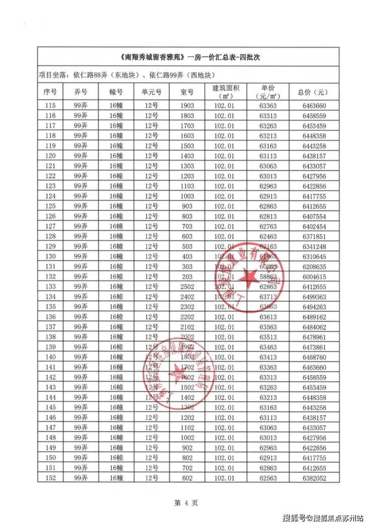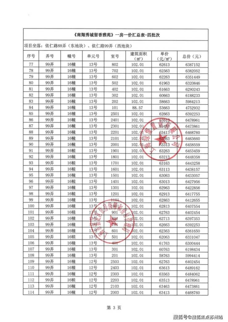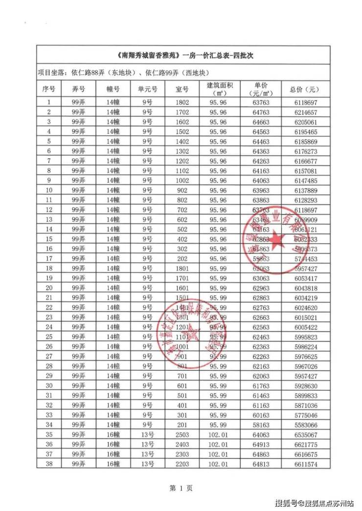「一房一价表」