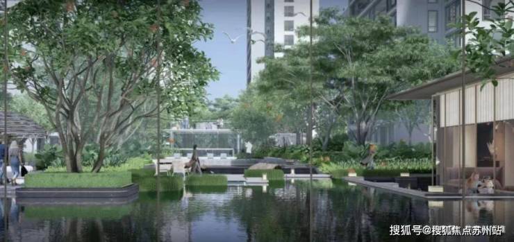 东西区双庭前水景+东区泳池+西区中央草坪