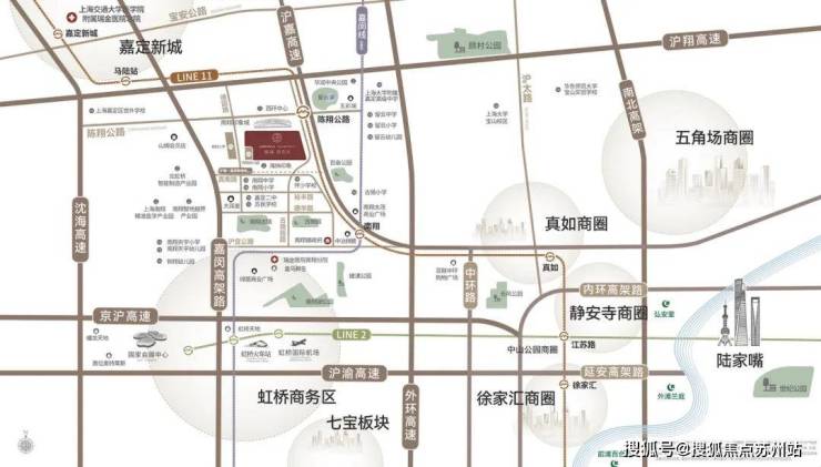 项目交通优势突出,距离地铁11号线陈翔公路站不到400米,拥有“双轨交”(11号线+嘉闵线)+“双高速”(沪嘉高速+嘉闵高架)的配置,还有规划中的南翔枢纽,未来将是嘉定第一个3线换乘枢纽,可便捷通达虹桥、上海市中心等地。