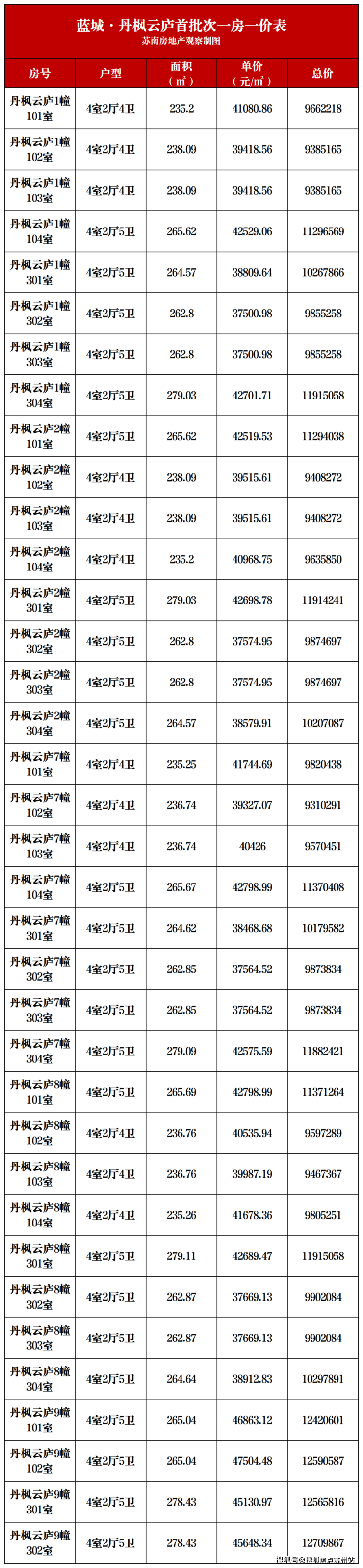 一房一价表如下,建议收藏
