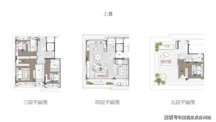 以建面约291㎡的上叠产品为例,除了中间层约16㎡的阳台宽境露台,顶层还有约55㎡的超大露台。……生活的可能性被无限放大。