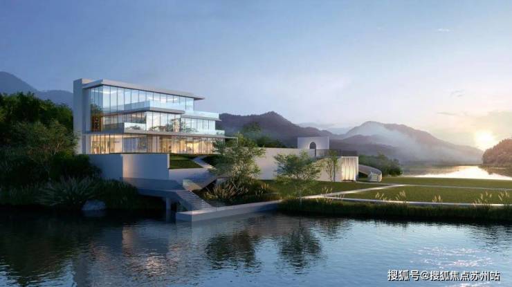 ➤➤一幢幢通透的合院+叠墅,轻盈地落在湖山间,让人想起西溪雲庐的Trees Villa。