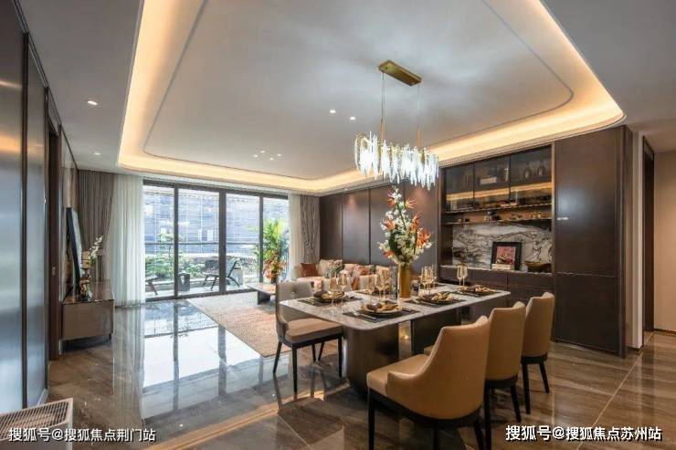 建面约310㎡的边套,首层南向横厅面宽就达到了约6.9米,厨房面宽约5.5米,可以阔绰地分出中西厨;