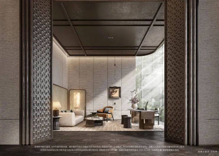 另外,项目首层通过硬朗直线呼应柔和曲线勾勒,辅以温润石材与古铜色金属线条融合,打造东西方美学共融的艺术藏品