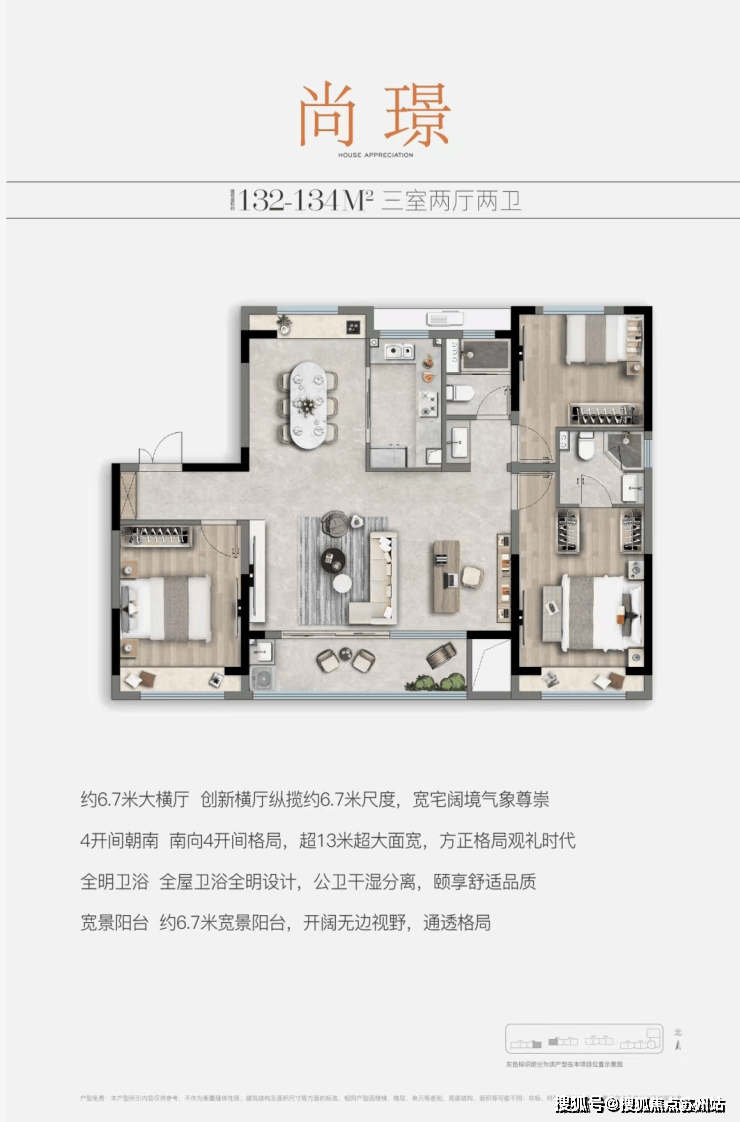 户型点评:大尺度南向四开间,不只带来视野提升,更契合当下生活对阳光、通风的更高诉求;宽度约6.7米的横厅是点睛之笔,可自主隔离一间功能房,居家办公室、健身房、电竞房随心改造,品质感直线拉升。