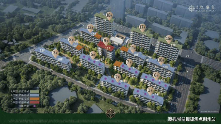 项目产品:9栋8-10F住宅、2栋11+1F住宅、3栋17F住宅