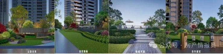》酒店式归家体系:港湾式落客区、约35米长卷府门、度假感景观水池》泛社交园林:跃动跑道、会客水庭、林下会客厅等功能区