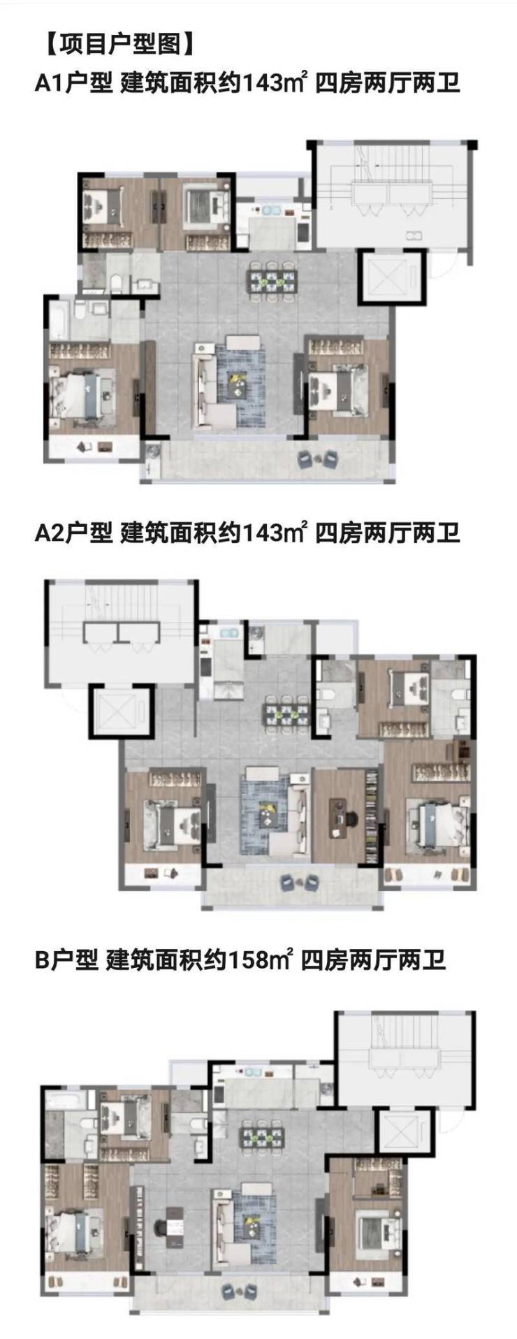 洋房:9-11层,建面约143-228㎡,主打全生命周期宽境布局