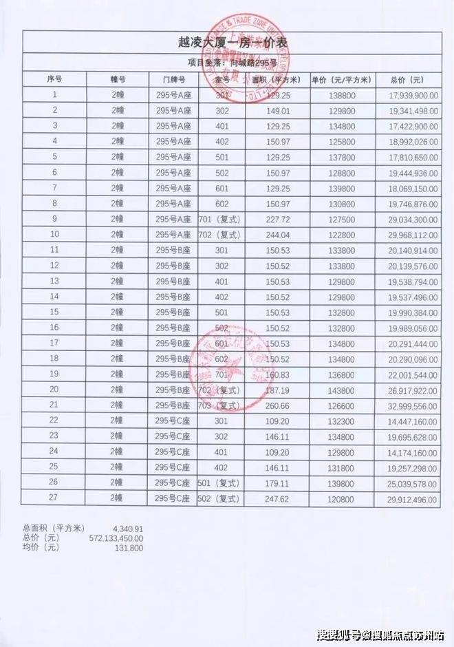 一房一价表