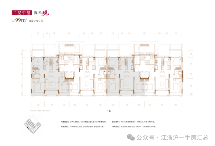 建面约99㎡3房2厅2卫(三层上叠):