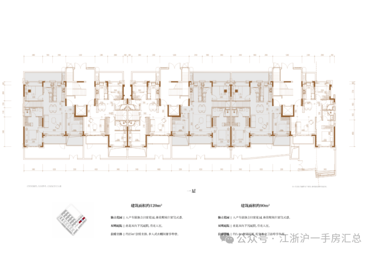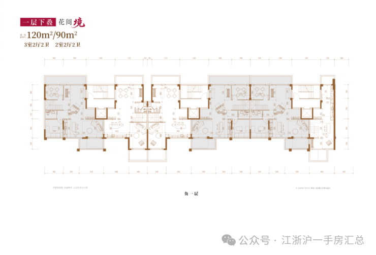 建面约120㎡3房2厅2卫/90㎡2房2厅2卫(一层下叠):