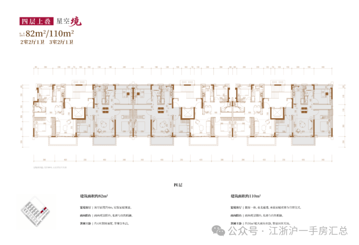 建面约82㎡2房2厅2卫/110㎡3房2厅2卫(四层上叠):