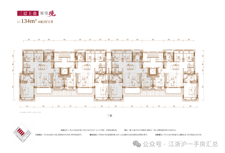 建面约134㎡4房2厅2卫(三层上叠):