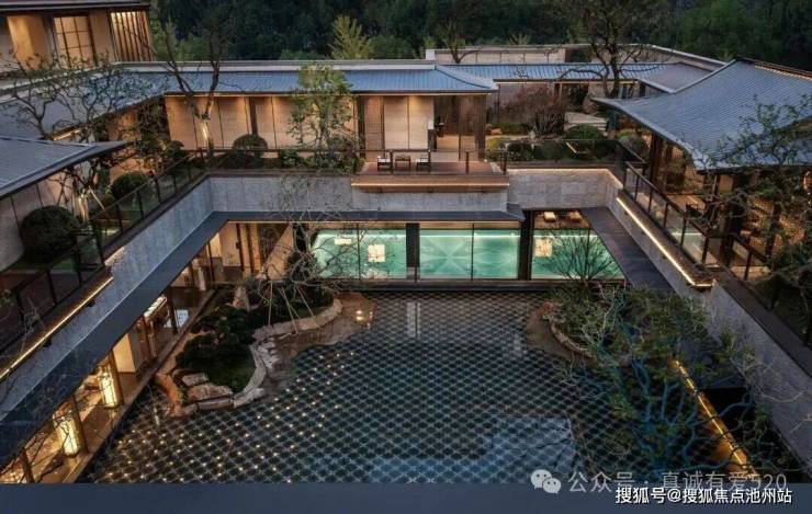 归家仪式:宽53米、高11米的歇山顶门庭,搭配蓝翡翠奢石景墙、铜狮及罗汉松,以皇家规制重塑东方门第礼序