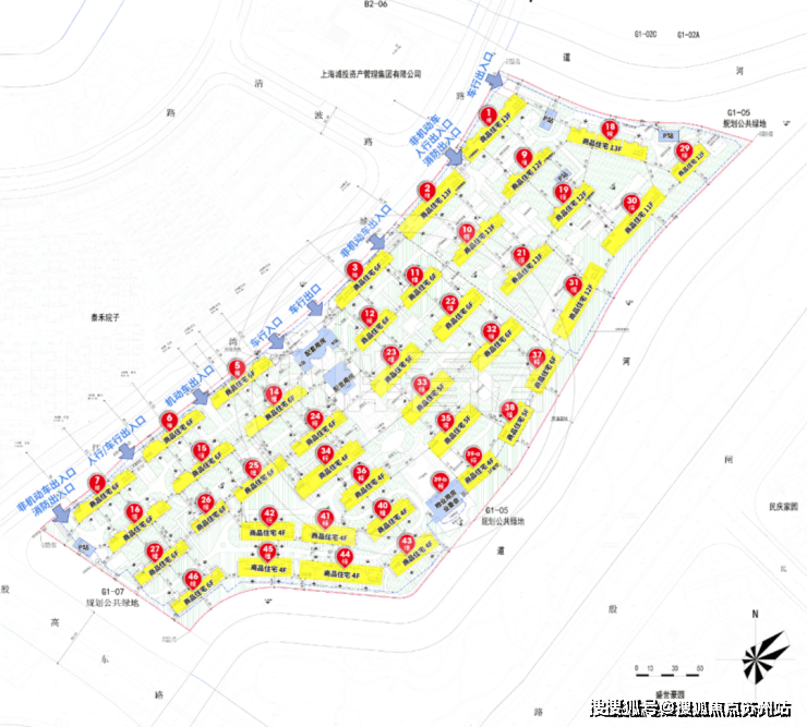 值得一提的是,涛哥看到其社区采用了南偏东排布,朝向顺应地块形态以及河道流向,实现最大化面宽、楼间距与景观价值。
