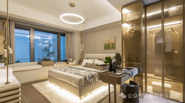 另外主卧是套间,自带超大衣帽收纳空间和卫生间,为主人提供了独立、私密的休息和活动空间。