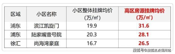 ·陆家嘴壹号院整体挂牌均价20.3万/㎡,高区江景房却要28.1万/㎡;