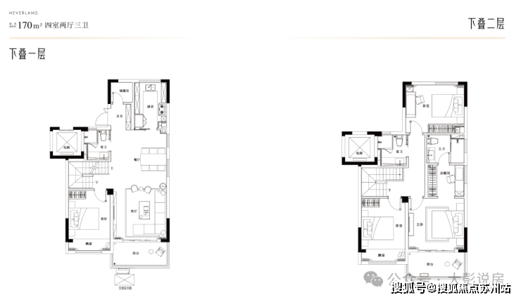 【户型面积】建面约143-265㎡瞰景平层 滨水叠墅