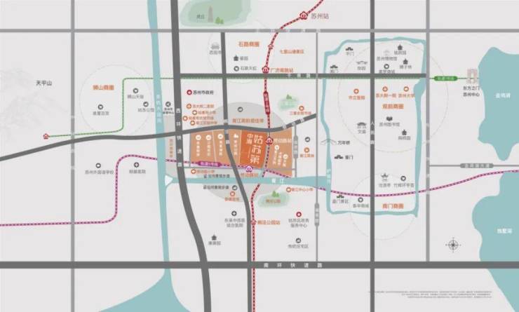 姑苏城芯,双轨交汇,天街为邻 中海姑苏第坐落于姑苏区珍贵的COD核心区,属于资源高度集中的“胥江高阶生活带”。这里出门就是地铁2号线和5号线,轻松换乘,通达全城。更吸引人的是,项目与大型商业综合体“胥江天街”为邻,众多苏州首店品牌汇聚,繁华生活举步即享。