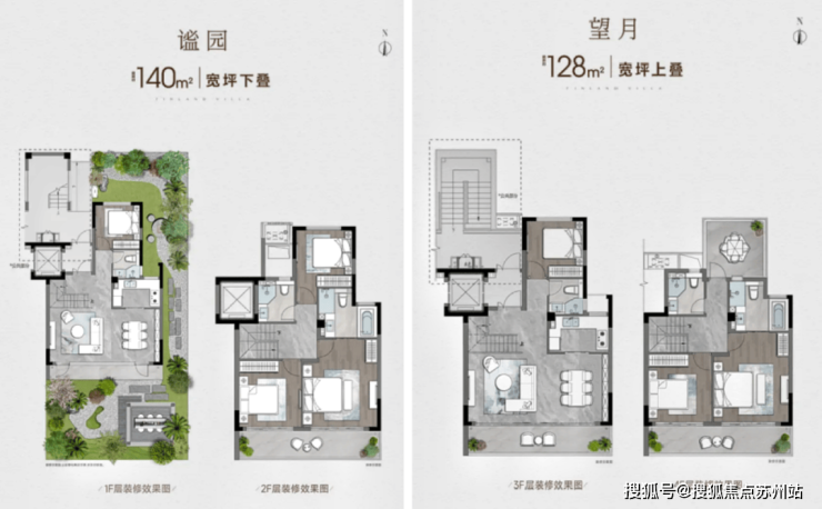 叠加一共四层,为上下双叠,建面约128-140㎡。一楼带院子,上叠送露台,实际得房率超高!