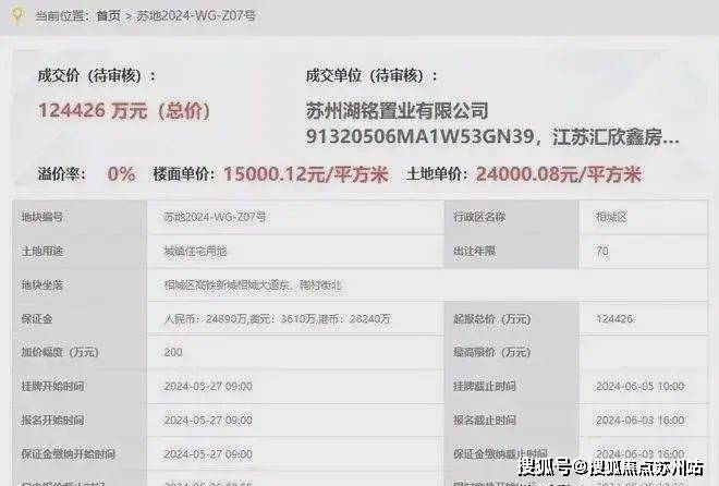 龙湖未来·御湖境,位于相城区高铁新城相城大道东、陶村街北,是今年6月5日,龙湖以底价124426万元竞得的宅地,成交楼面价15000元/平。