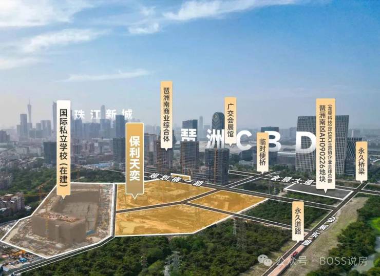 保利天奕位于广州琶洲岛南部,是去年10月30日保利以底价摘牌海珠区琶洲南区AH090402、AH090403、AH090404地块,三宗地总建面13.8万㎡,总价约59.01亿元,楼面价为4.25-4.3万元/㎡