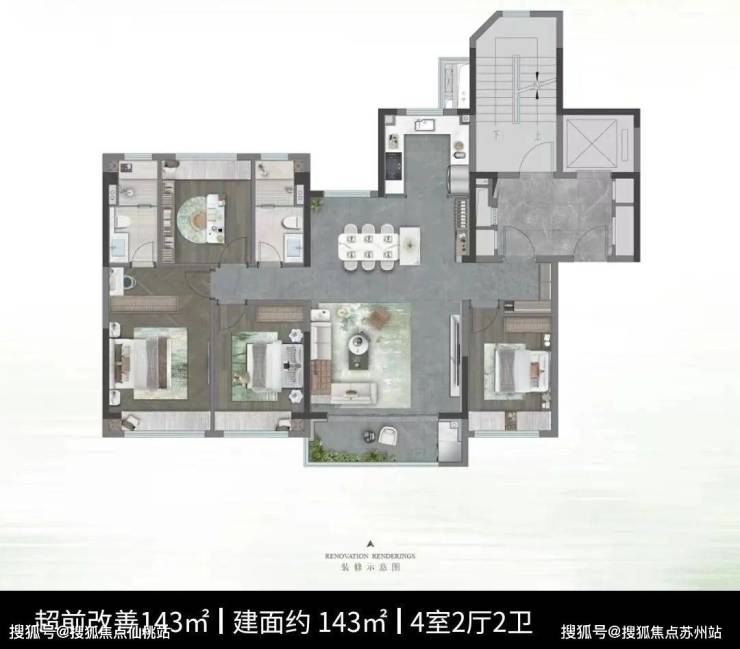 从设计方案来看,小区可售房源以13、14F为主,即便有连廊也是只有某一层楼有,大户型居多;小区内部有集中绿地和下沉式庭院,结合之前独家君打听来的消息,可能会设有会所之类的社区配套;地面车位设在小区西侧南侧的商业配套门口。