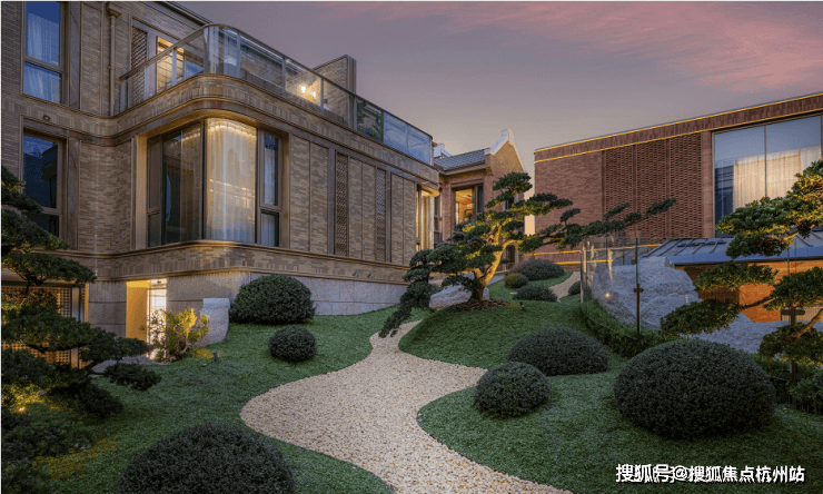 为了使我们在稀缺的地段营造稀缺的资源,把生活的想象现实化,越秀·外滩樾还在会所引“山水入园”。在空间有限的情况下,进行垂直空间的挖掘,营造了坡道景观、山水庭院和会所。