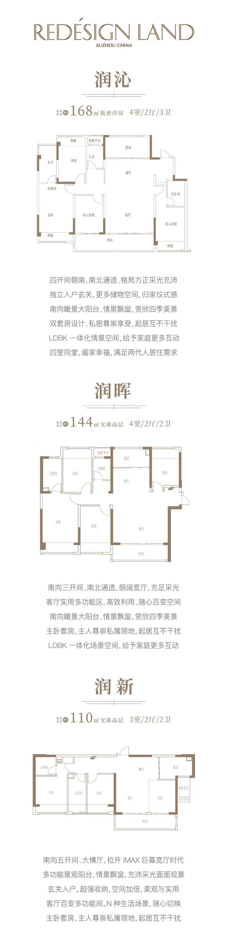 择址平江新城,姑苏新中心,润宸借鉴国际社区设计理念,规划12栋住宅,其中8栋约168㎡低密洋房、4栋约110㎡/144㎡光幕高层。项目凭借润系高阶作品对国际新锐生活的理解,以镜面美学立面、苏韵园林景观、万象服务产品服务力、润心会所文化、匠心精装房产品,打造与平江共赴新的国际轻奢改善住区。