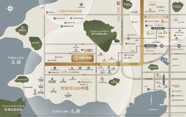 坐拥2400k㎡浩瀚太湖,背倚穹窿山。背山面水,藏风聚气,家业永固。独享112k㎡山林绿海,44.18%植被覆盖率,私藏光福香雪海、天平山等自然瑰宝。(数据来源网络)