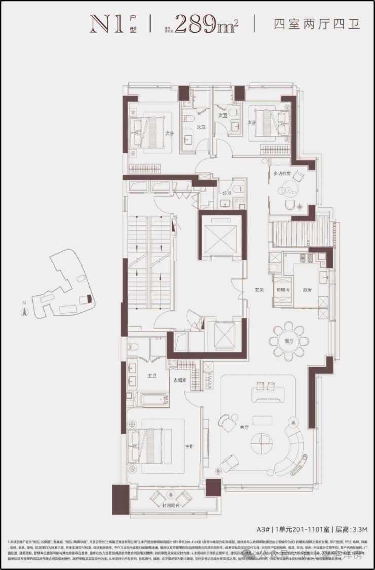 奢阔空间尺度:主打大三房规制,搭配四卫全明设计,精准契合多代同堂世家居住或塔尖圈层私密社交需求,空间通体通透、动线规划科学合理,无冗余浪费,每一寸格局都彰显城芯大宅的恢弘气度与尊崇格调.