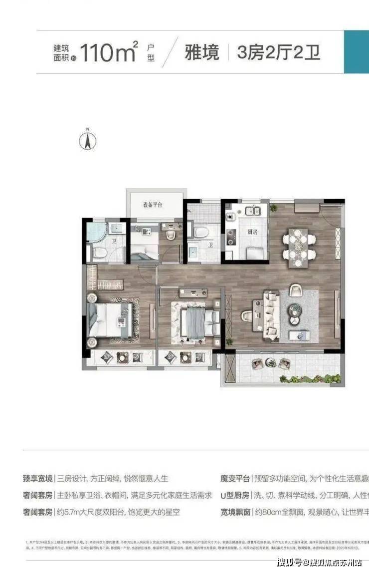 特别是大横厅的设计,既宽敞又采光充足,融娱乐、休闲、会客于一体,而大境悦府的主推户型——100平方米的纯横厅3房2厅2卫设计,更是方正之作。该户型南北通透,阳光每日洒落,超大尺度飘窗,尽享最佳光照与清新空气,定义了居住的新境界。