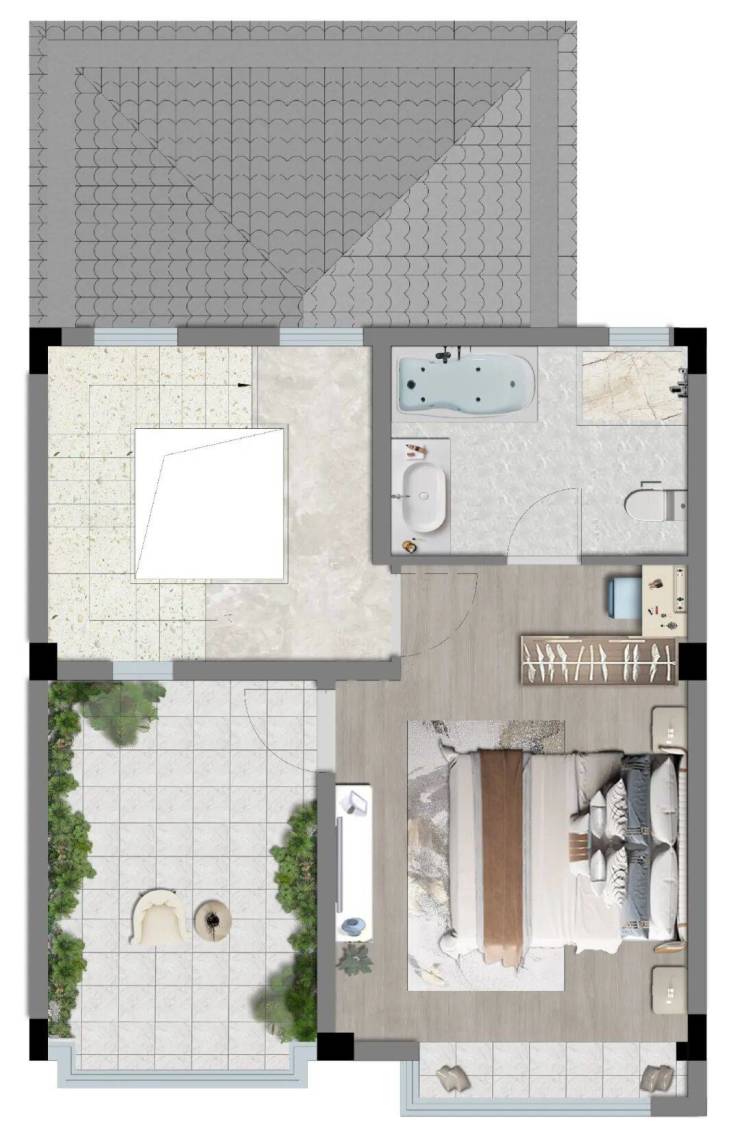 建面约197㎡排屋 三层装修示意图 非交付标准