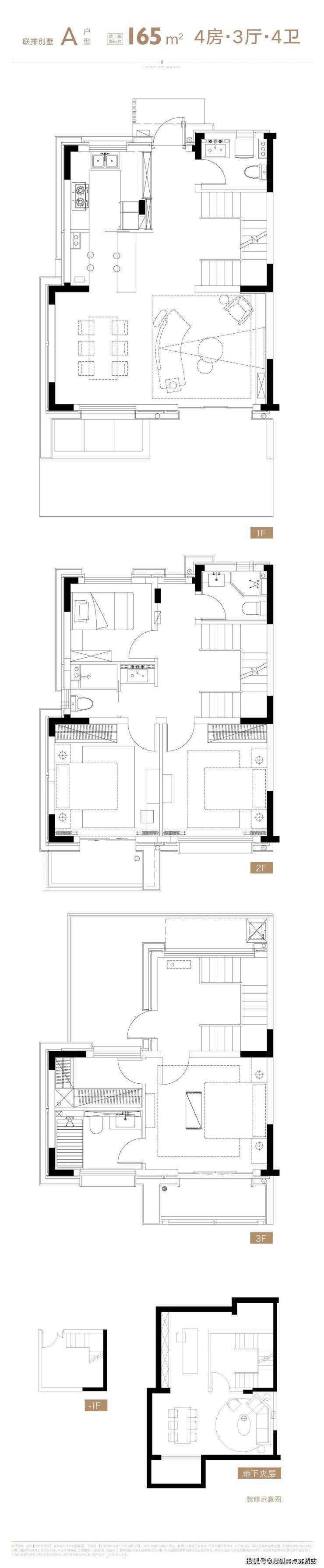 联排别墅主打约158-165㎡地上三层产品,带露台和相对独立的使用景观分区。