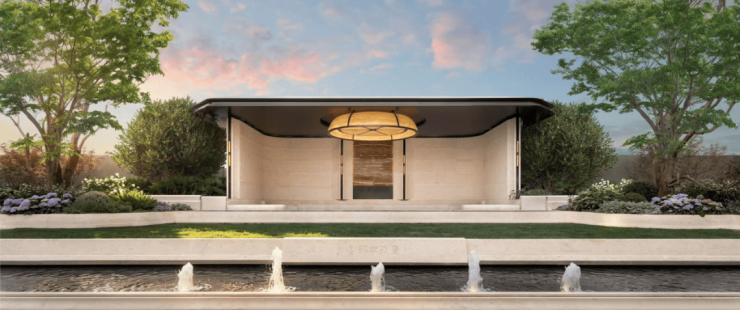 项目景观整体根据英国丘吉尔庄园的恢弘轴线,打造超275米纵向与145米横向十字核心景观轴,尺度感放眼内环旁几无对手,这里也注定成为真如新的城市记忆点。