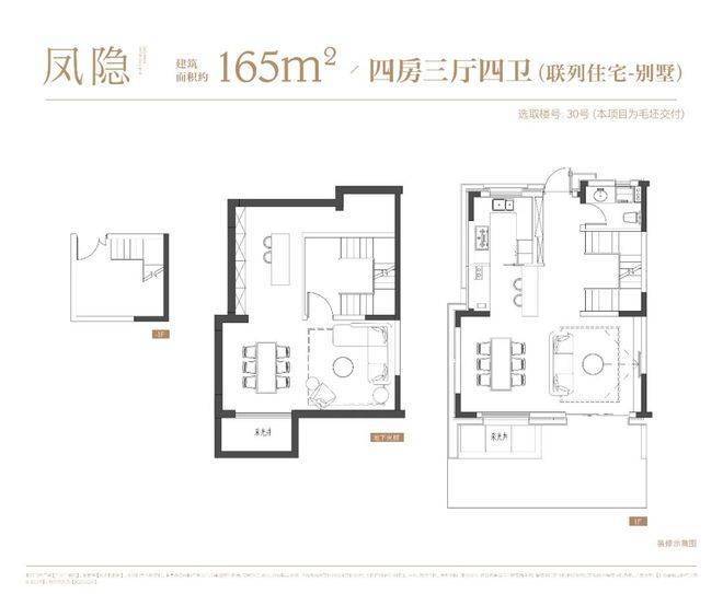 4层叠墅分为上/下叠,上叠建筑面积约139㎡,下叠建筑面积约142㎡,均为4房设计。
