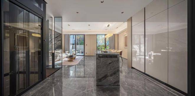 另外,精装地下车库做了时下流行的星空顶设计,显得非常现代精致,部分联排也是直通地库。