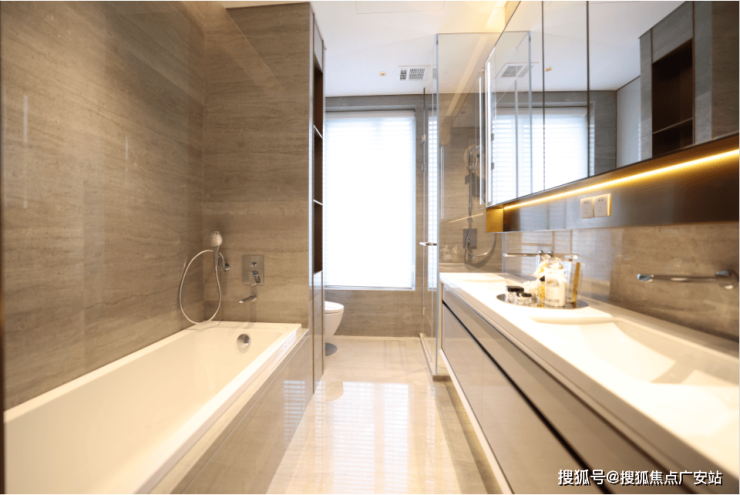 本以为卫生间会是“装修死角”,实际的德国唯宝台盆+浴缸(主卫)+洁具、美国杜邦台面、日本松下暖风机告诉我,品尊国际三期产品真不是随便说说的,超高品味、奢华质感打造灵魂居所.