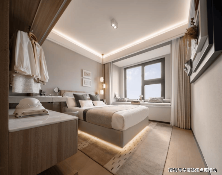 主卧软装家具都做了标准尺寸,剩下的过道空间如图所示也并不是很窄,还是比较良心的!主卧玻璃采用了三玻两腔中置百叶窗,气密性更好。