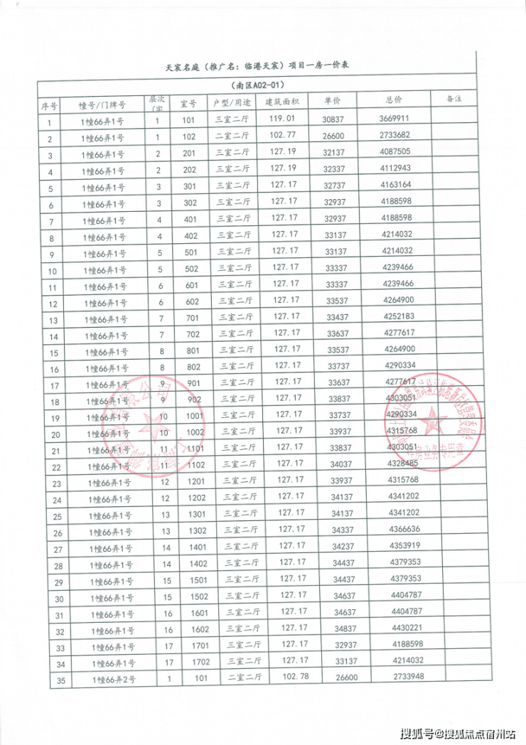 一房一价表