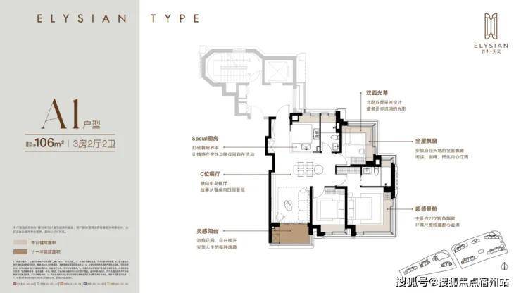 每个户型至少6个飘窗,边套更是约270°转角瞰景.