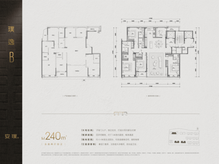 建面约240㎡、280㎡的五房,都罕见地做了南厅布局,LDKB一体的大公区,面积都超过了70㎡!
