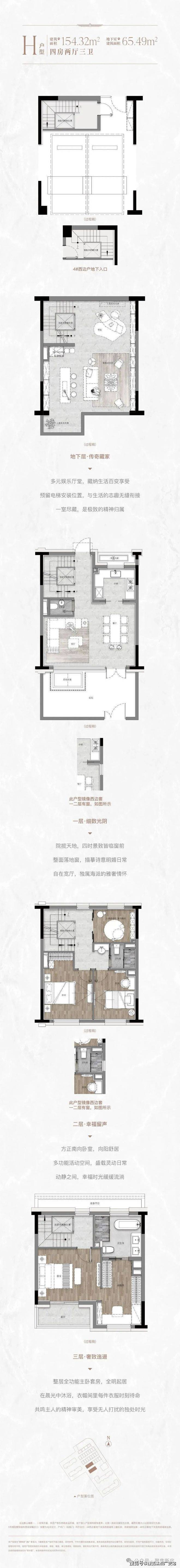 建面约130㎡户型,地上三层,楼上楼下分层而居,阔绰的地下空间又能丰富生活情境,重新定义了小面积墅居的标准。