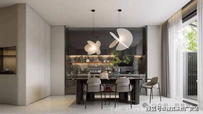 厨房与餐厅的无缝衔接,让"烟火"二字有了生动的注脚,主人烹饪时家人已在餐桌摆好碗筷,生活的温度就藏在这一蔬一饭的默契里。