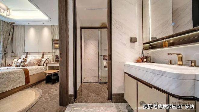 男女衣帽区的设计,更藏着对生活品质的追求,男主人区可以定制整面墙的旋转衣架,西装、衬衫、高尔夫球服按颜色排列,女主人区可以打造嵌入式衣柜,靠窗的首饰台,让清晨的护肤仪式,夜晚的首饰整理,都成了充满仪式感的日常。