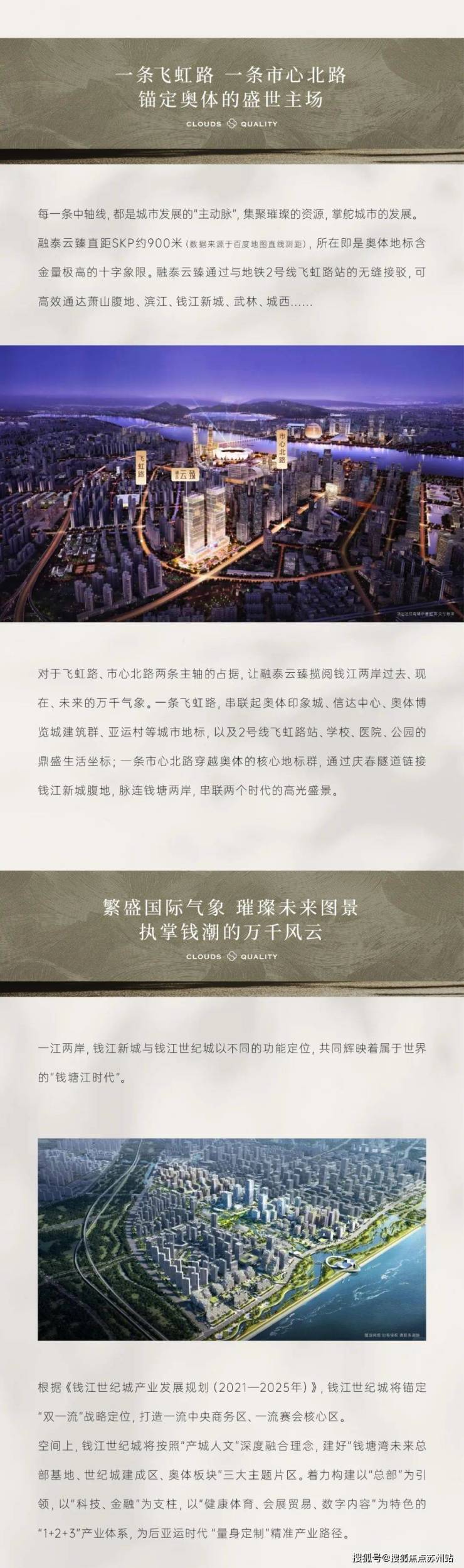 本案位于杭州萧山钱江世纪城奥体板块,与钱江新城合称“杭州CBD双核”,集合板块内优质配套资源,繁华触手可及。项目傲领钱江世纪城奥体核芯,东临市心北路,南侧飞虹路,坐拥“2横3纵3隧道4铁”交通便利,高效通达长三角及世界各大重要城市。