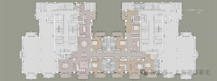 住宅部分全部大平层(复式)设计,单套面积约370-1500㎡,全部精装交付.
