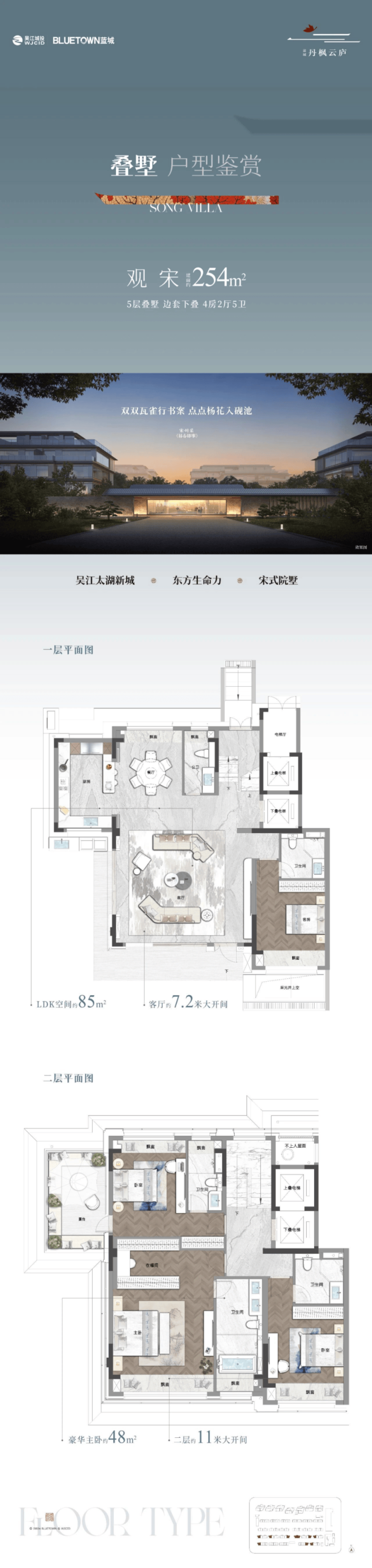 面积段:约200-300㎡创新宋风院墅;约169-258㎡奢阔平层大宅