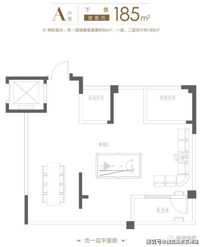 ⭕负一层储藏室建面约80㎡,层高约5.1米