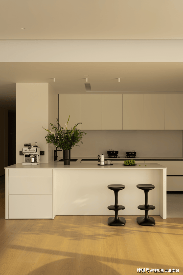 全开放式设计,岛形沙发打破边界,让交流随光影自由发生。午后的光线从侧面洒落,家具被赋予立体的光影层次。